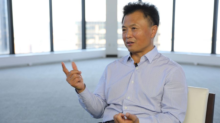 Nick Wang, an importer of garlic and ginger, is interviewed by Xinhua in New York, the United States, Sept. 6, 2019. (Xinhua/Zhang Mocheng)