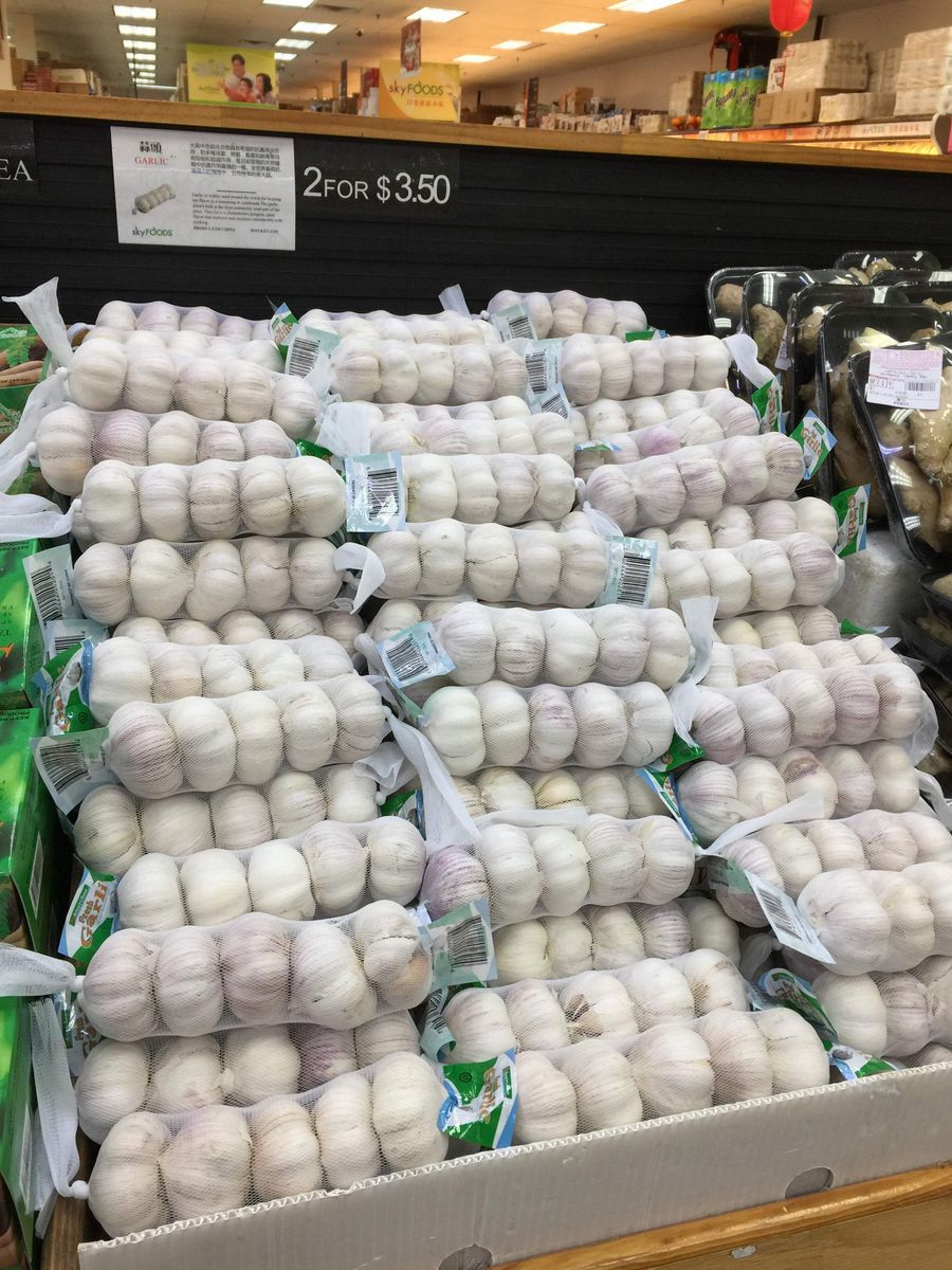 Garlic and ginger are always placed in juxtaposition at various markets. At one supermarket beside the Queens Boulevard in New York, 10 heads of garlic are sold for 3.5 dollars and ginger is billed at 1.99 dollars per pound (about 4.5 kg).
