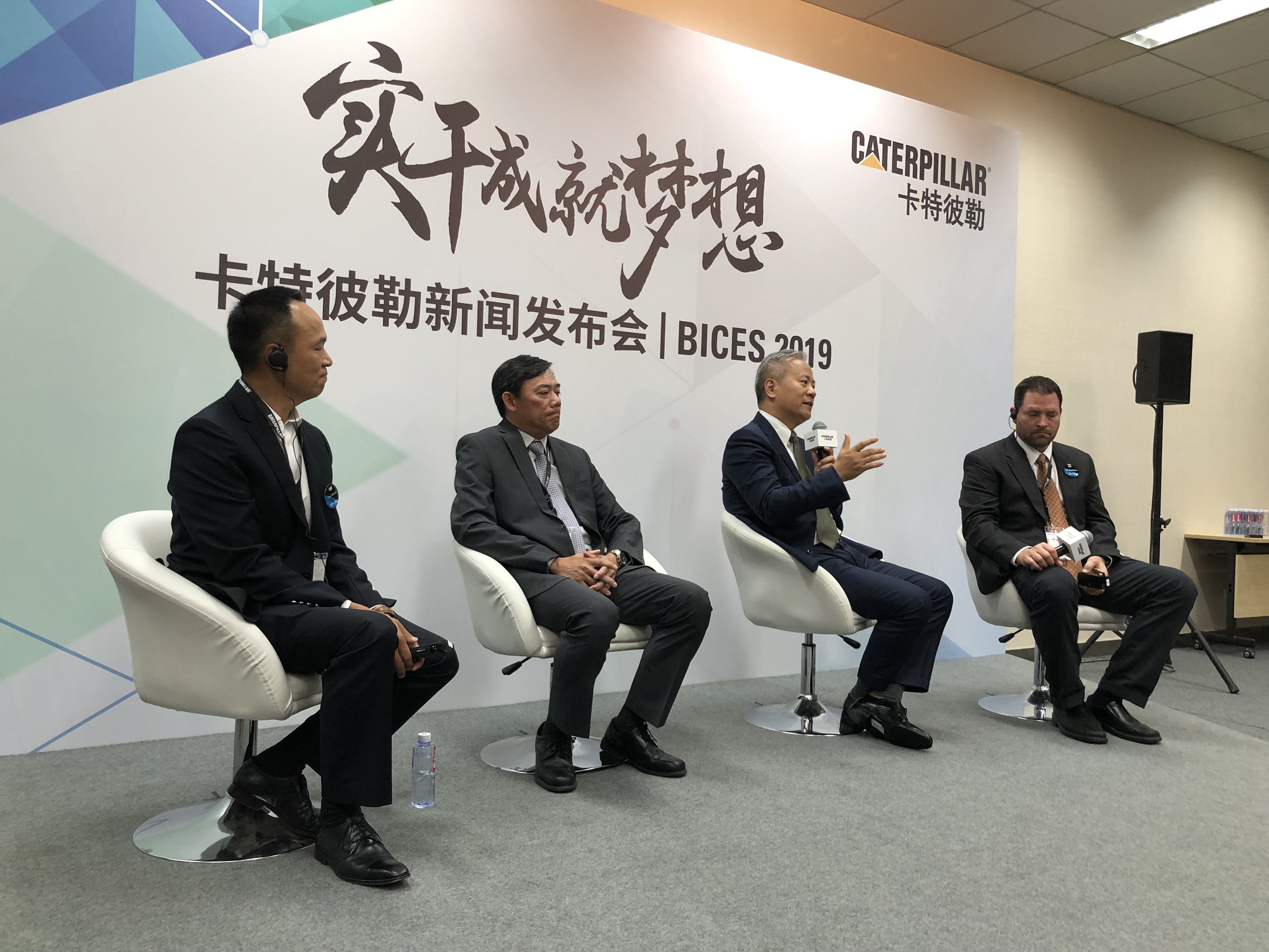 Chen Qihua, vice president of Caterpillar Inc., speaks at the press conference to launch new products at the new venue of China International Exhibition Center in Beijing, capital of China, Sept. 4, 2019. (Xinhua/Zhang Zhaoqing)