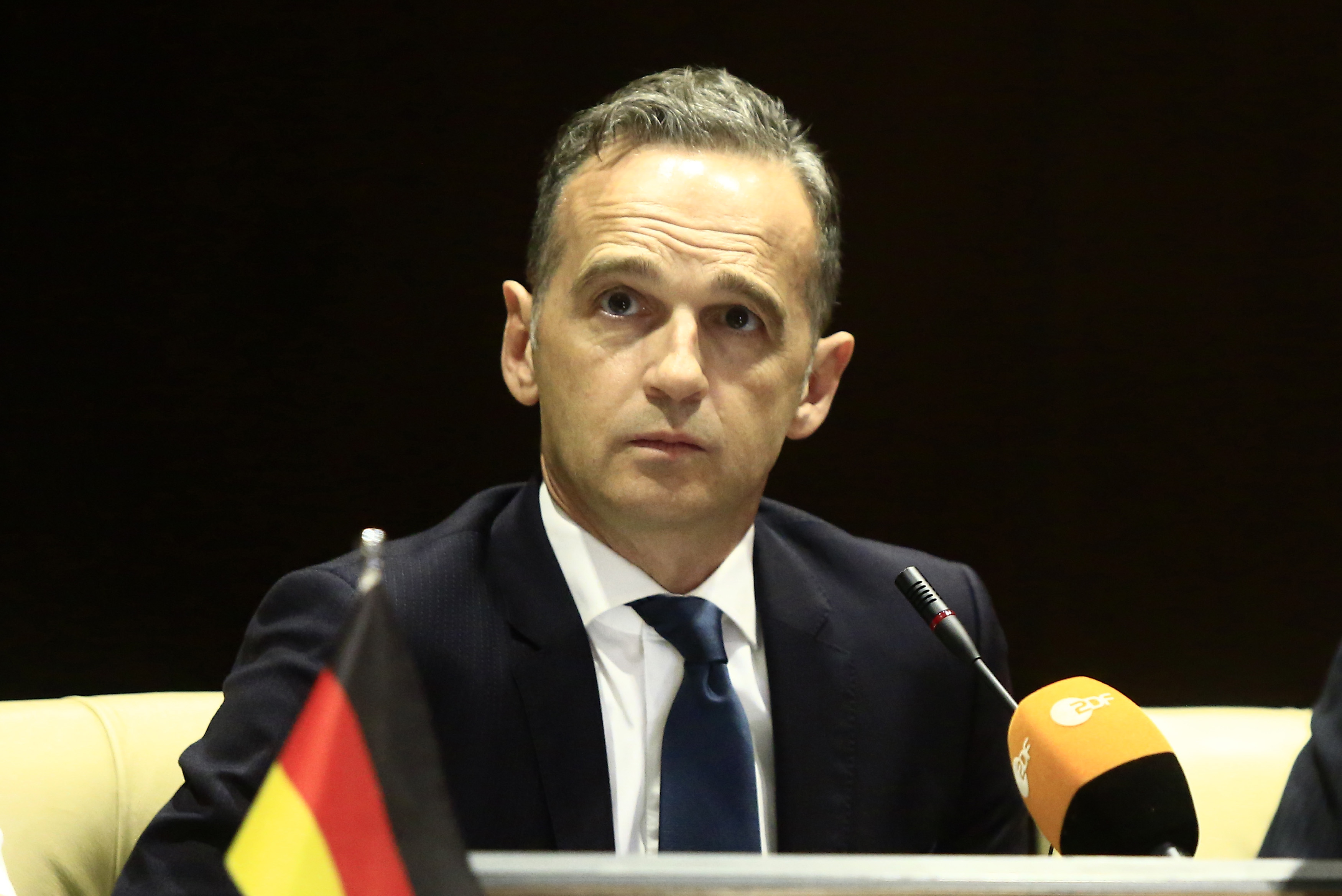 German Foreign Minister Heiko Maas attends a press conference with Sudan's Prime Minister Abdalla Hamdok (not in the picture) in Khartoum, Sudan, Sept. 3, 2019. (Xinhua/Mohamed Khidir)