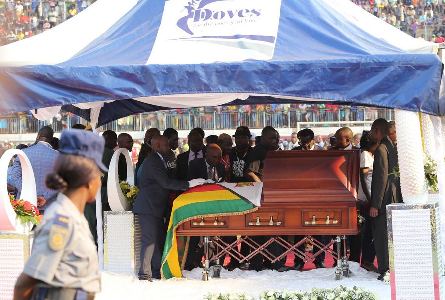 People pay respect to the late former Zimbabwean President Robert Mugabe in Harare, Zimbabwe, on Sept. 12, 2019. (Photo by Chen Yaqin/Xinhua)