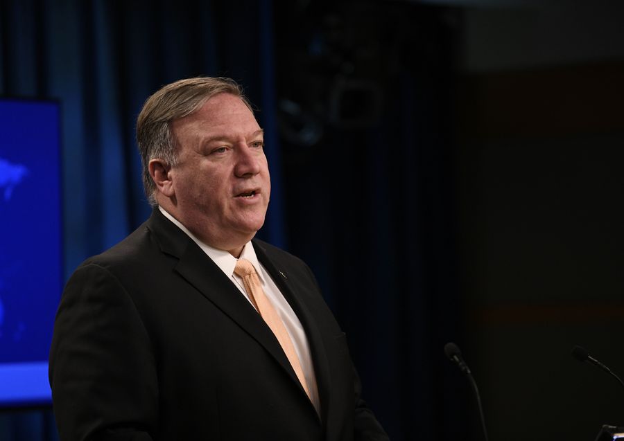 U.S. Secretary of State Mike Pompeo speaks during a press briefing in Washington D.C., the United States, April 22, 2019. (Xinhua/Liu Jie)
