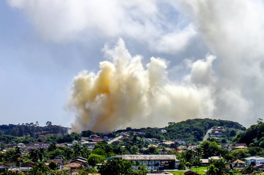Smoke rises after a fire at a fertilizer warehouse in Sao Francisco do Sul, Santa Catarina state, Brazil, on Sept. 26, 2013. (Xinhua/Anderson Gores/AGP/AGENCIA ESTADO)
