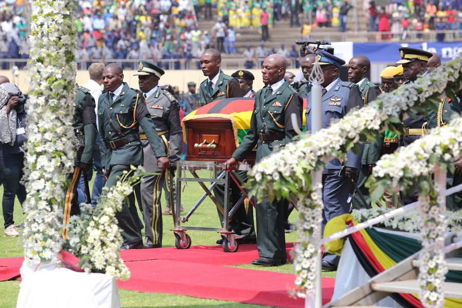 HARARE, Sept. 14 (Xinhua) -- Foreign dignitaries including former and current African leaders on Saturday paid tribute to the late former President of Zimbabwe Robert Mugabe at a state funeral in Harare.