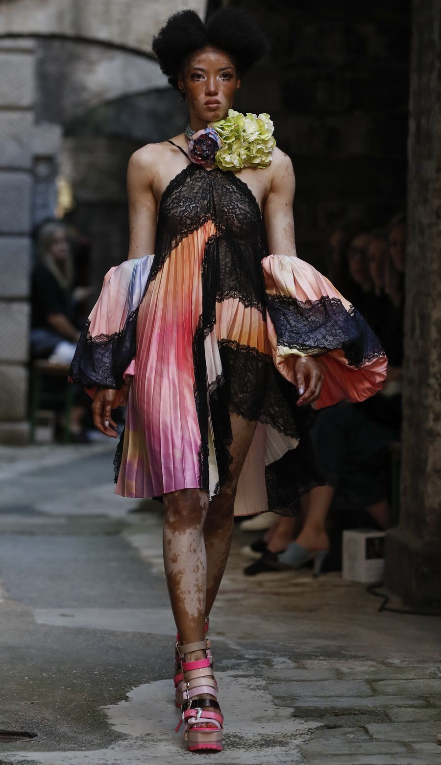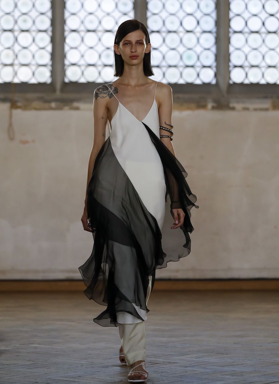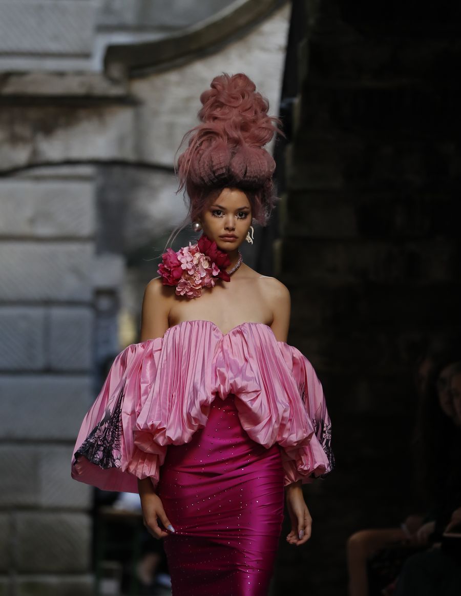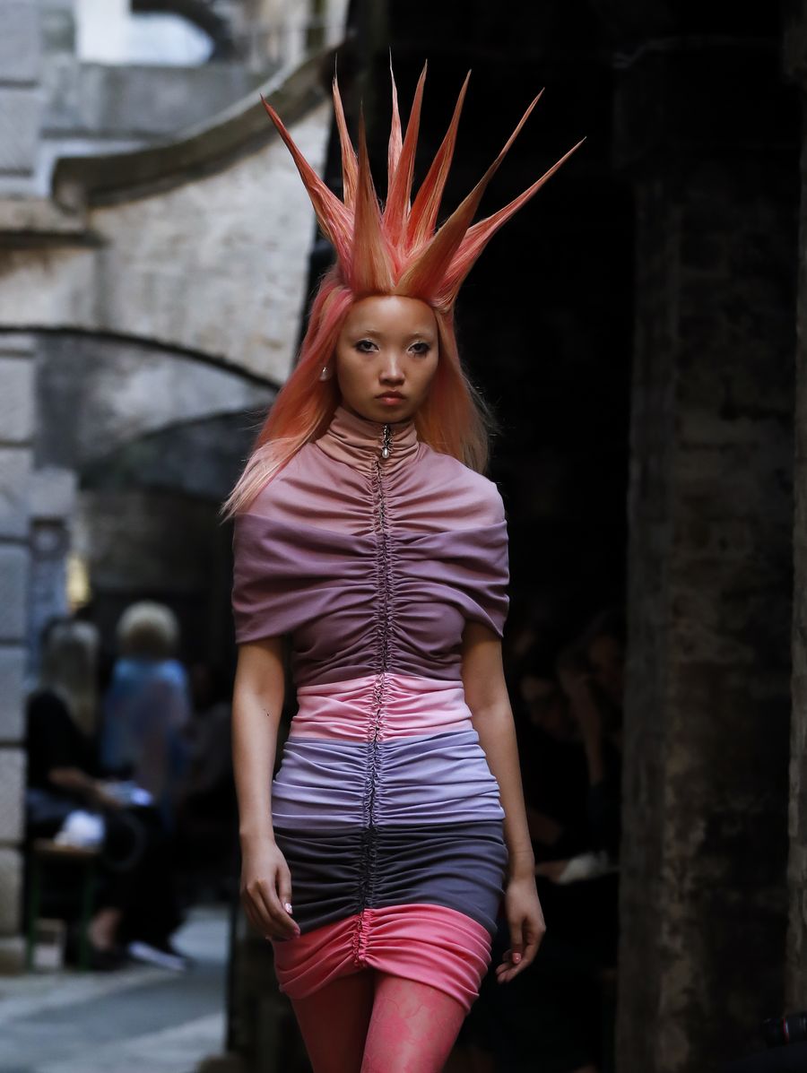 A model presents a creation of Fyodor Golan at Somerset House during the London Fashion Week in London, Britain. (Xinhua/Han Yan)