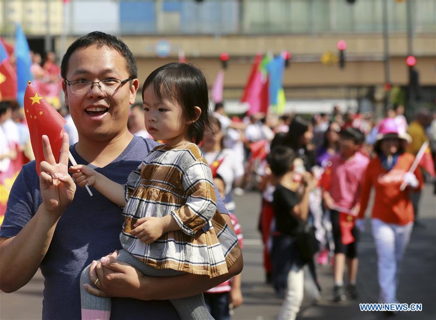 CHICAGO, Sept. 15 (Xinhua) -- Tens of thousands of people crowded the streets in Chicago's Chinatown on Sunday to attend the Chinese National Day Parade, to mark the 70th anniversary of the founding of the People's Republic of China (PRC) and the 40th anniversary of the establishment of China-U.S. diplomatic relations.
