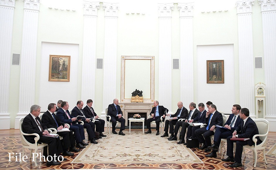 Russian President Vladimir Putin talks to his Belarus counterpart Alexander Lukashenko during a meeting at the Kremlin in Moscow on December 25, 2018. (KREMLIN PHOTO)