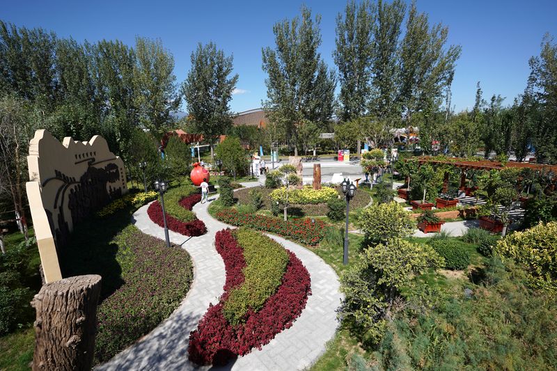 Visitors tour the Xinjiang Garden of the Beijing International Horticultural Exhibition in Beijing, capital of China. (Xinhua/Ju Huanzong)