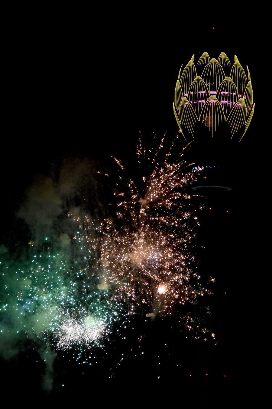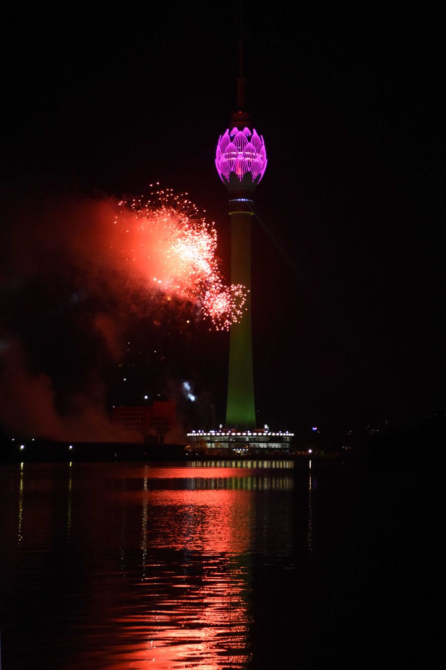 Photo taken on Sept. 16, 2019 shows fireworks in front of the Lotus Tower in Colombo, Sri Lanka. (Photo by Gayan Sameera/Xinhua) ■