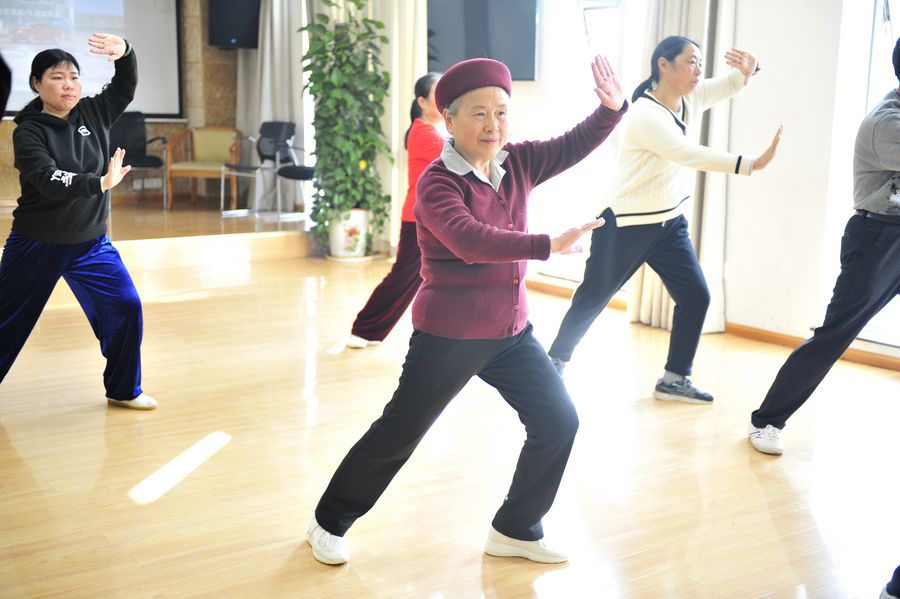 Students from "Happy Elderly College" practice Tai Chi in Changsha, central China's Hunan Province, Nov. 24, 2018. (Xinhua/Li Lindong)