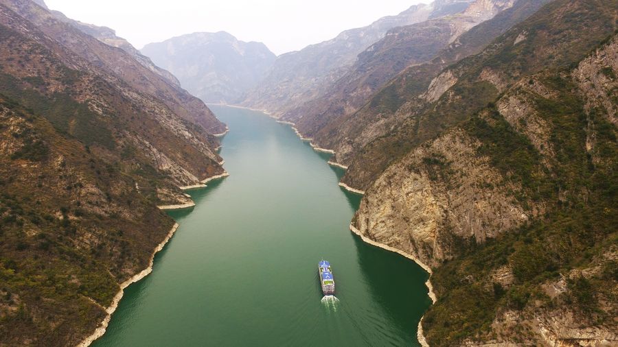 A ship sails in the Wuxia Gorge, one of the Three Gorges on the Yangtze River, in Wushan County, southwest China's Chongqing Municipality, March 26, 2019. (Xinhua/Wang Quanchao)
