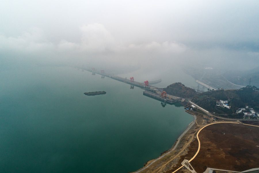Aerial photo taken on Dec. 21, 2018 shows the Three Gorges Dam, a hydropower project on the Yangtze River, in Zigui County of Yichang City, central China's Hubei Province. (Xinhua/Wang Gang)