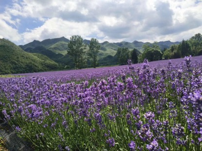 Lavender field planted by Annie Leung's team is in blossom in Hezhang County, Guizhou Province, southwest China, in July 2019. (Photo provided to Xinhua)