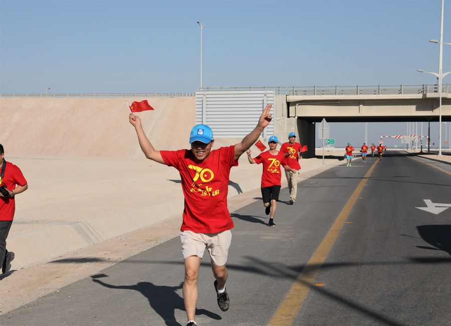Chinese companies in Kuwait hold a marathon in Kuwait City, capital of Kuwait, to mark the 70th anniversary of the founding of the People's Republic of China on Sept. 20, 2019. (Xinhua/ Nie Yunpeng)