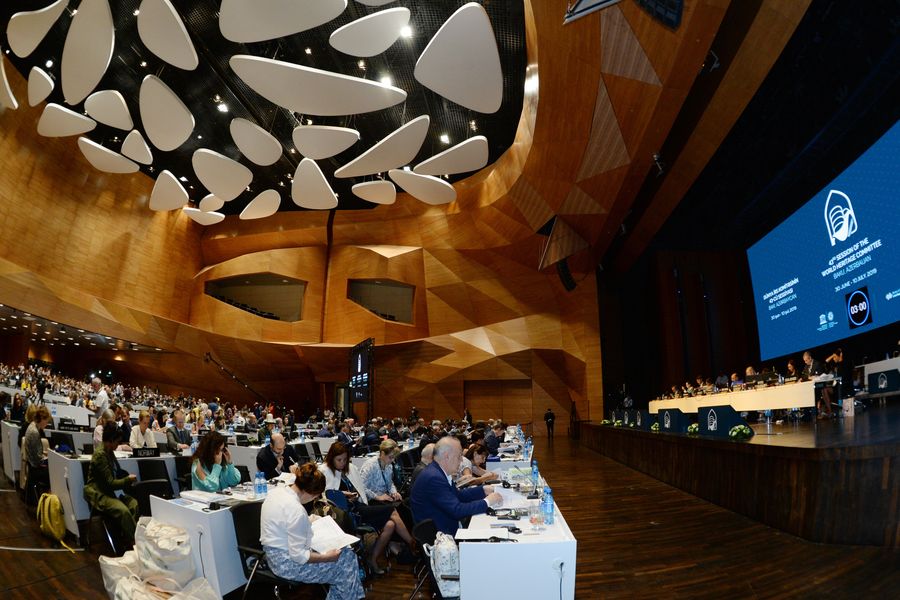 Photo taken on July 5, 2019 shows a scene of the 43rd session of the UNESCO World Heritage Committee in Baku, Azerbaijan. (Xinhua/Tofik Babayev)