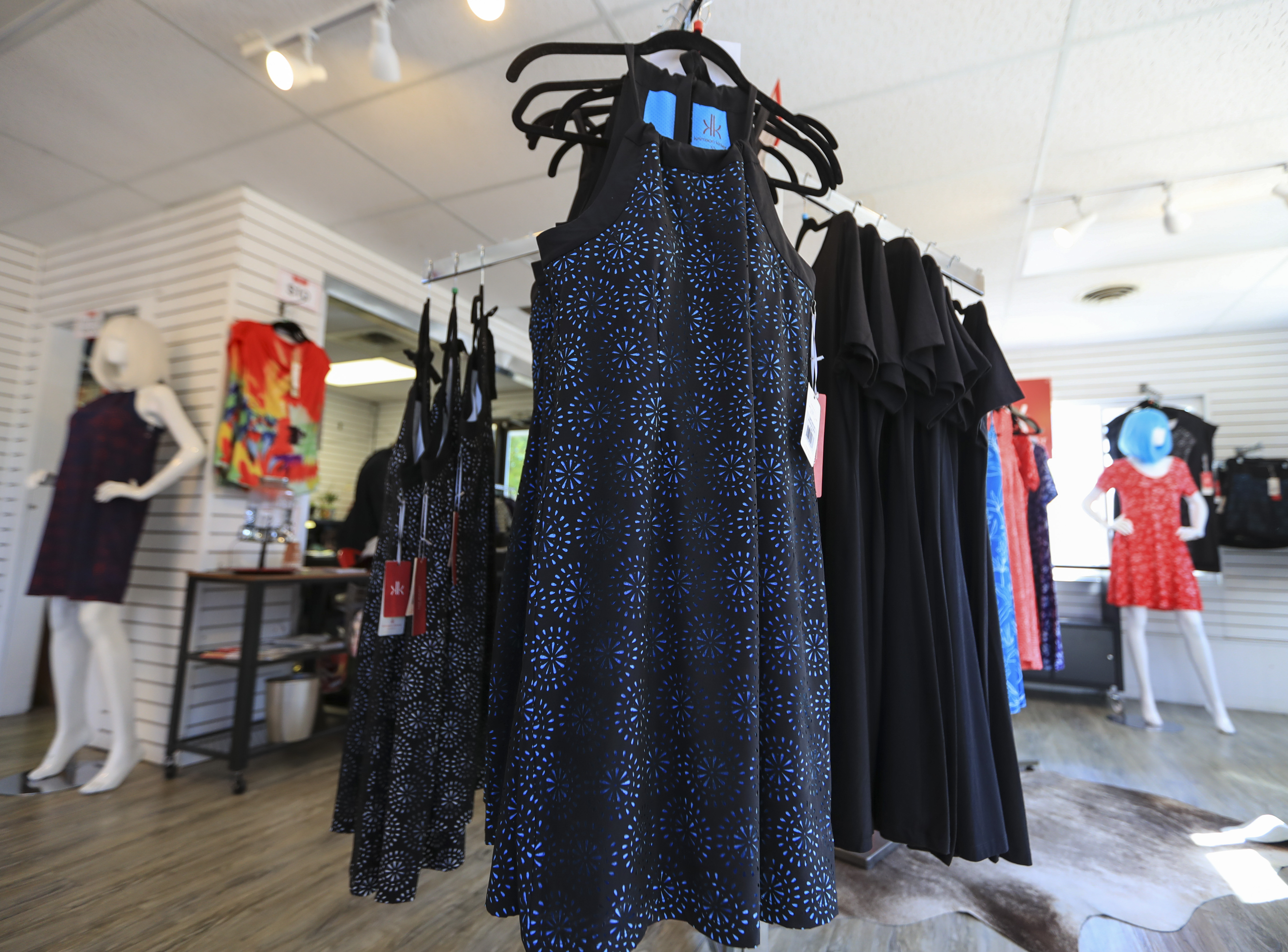 Photo taken on Sept. 12, 2019 shows dresses made in China at Krimson Klover in Boulder, Colorado, the United States. (Xinhua/Li Ying)