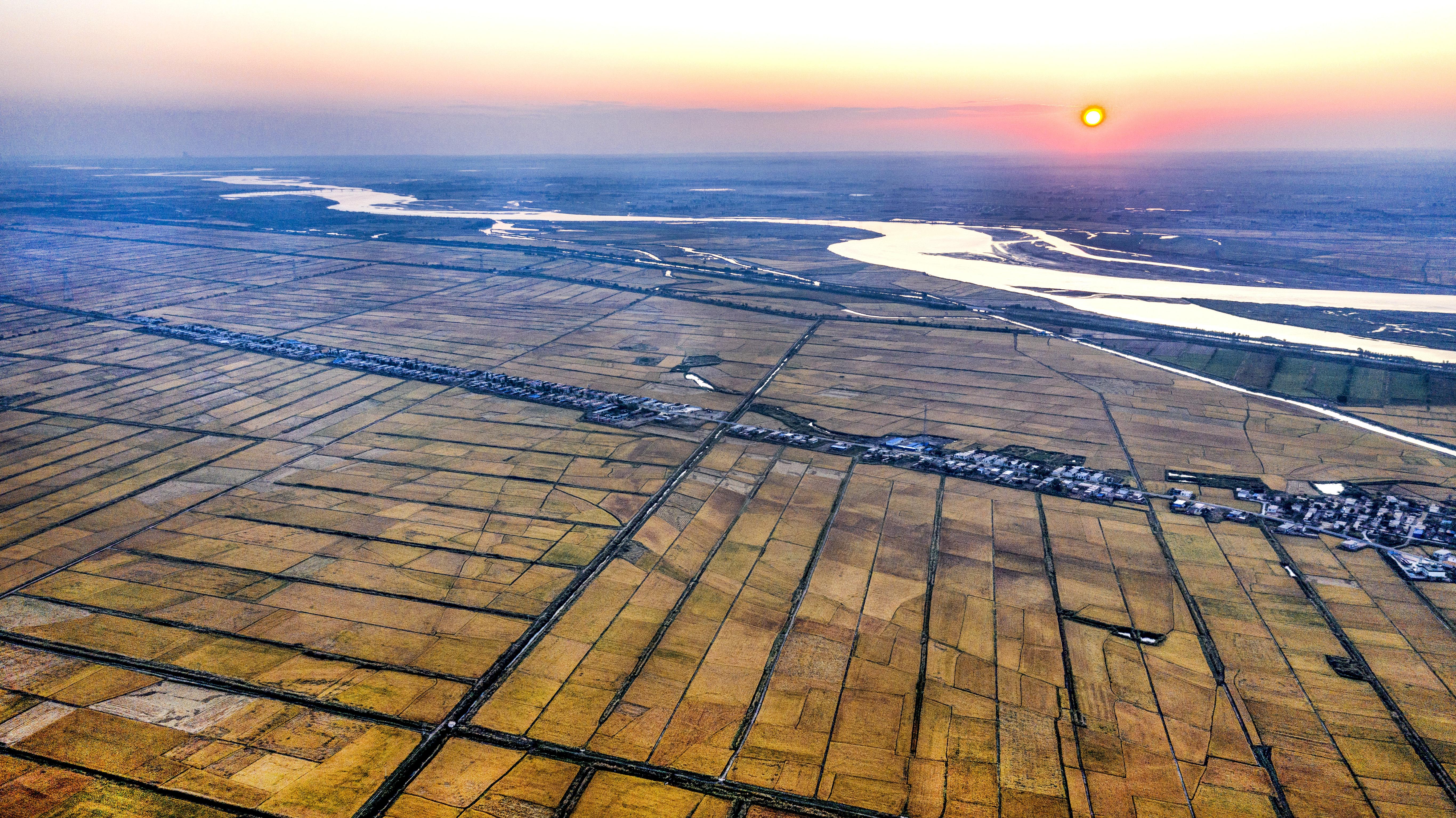 Aerial photo taken on Sept. 23, 2019 shows a view of fields in Pingluo County, northwest China's Ningxia Hui Autonomous Region. (Xinhua/Tao Ming)