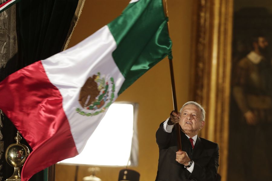 Mexico's President Andres Manuel Lopez Obrador attends the celebrations to mark the anniversary of the Mexico's Independence Day which falls on Sept. 16 in Mexico City, Mexico, Sept. 15, 2019. (Photo by Francisco Canedo/Xinhua)