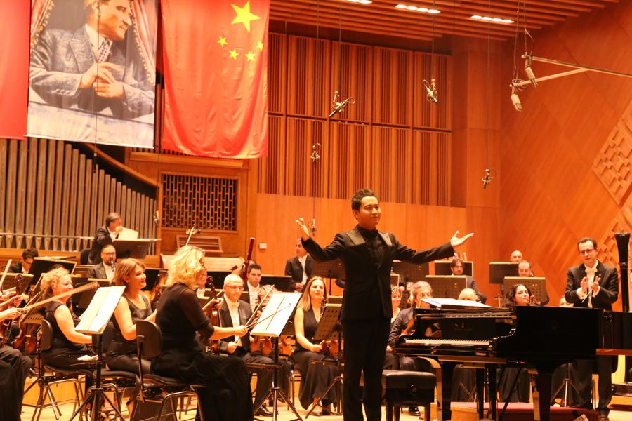 Chinese young pianist Wang Yang joined the world renowned Turkish Presidential Symphony Orchestra in the music feast held at the Presidential Symphony Orchestra (CSO) Concert Hall to entertain the audiences, by playing Chinese classics including "I love you, China," "The Unforgettable Character," "Ode to the Red Flag," as well as Turkish traditional song "The Breeze."