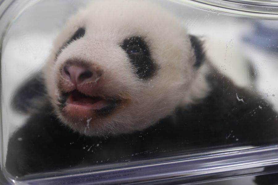 Photo taken on Sept. 25, 2019 shows a panda cub at Pairi Daiza zoo in Brugelette, Belgium.(Xinhua/Zhang Cheng)