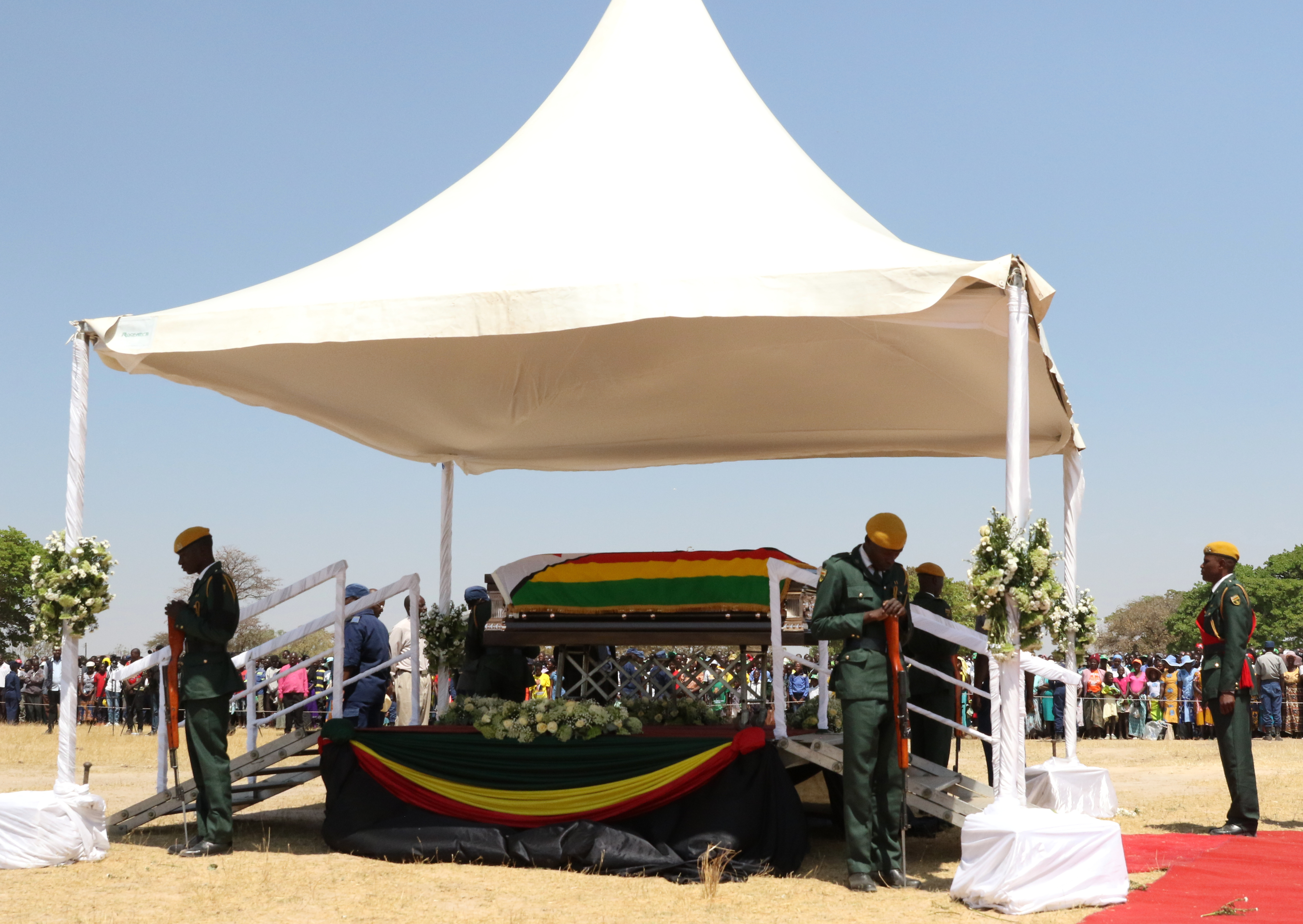 The casket of former Zimbabwean President Robert Mugabe in Zvimba, Zimbabwe. (Photo by Shaun Jusa/Xinhua)
