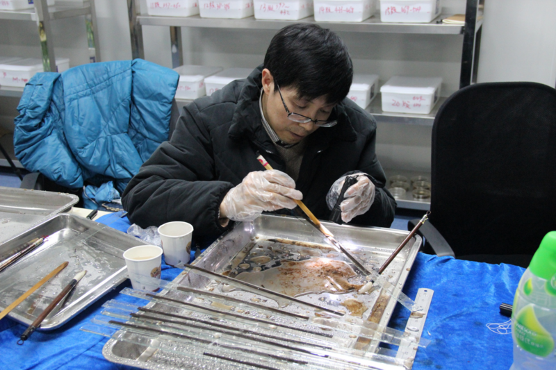 Xu Zaiguo cleans the slips. (File photo provided to Xinhua)