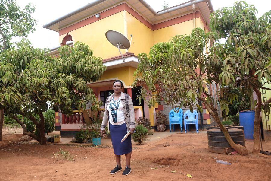 Joyce Ikinya stands in front of her villa with moringas in hands on Sept. 24, 2019.(Xinhua/Yang Zhen)