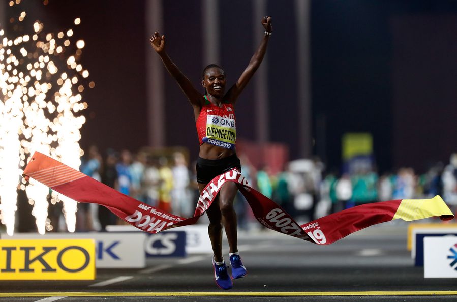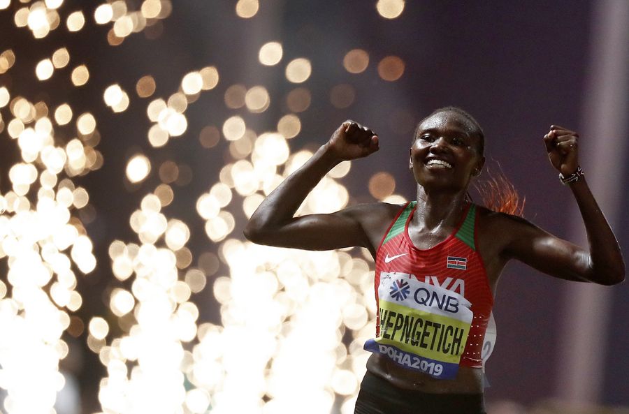 Chepngetich's winning mark of two hours, 32 minutes, 43 seconds, turned out to be the slowest one in the 36-year-history of the competition. The previous slowest winning time of the women's marathon event at the World Championships was 2:30:37 set by Kenya's Cathrine Ndereba at the Osaka worlds in 2007.