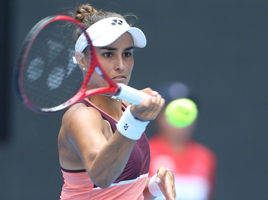 Monica Puig of Puerto Rico returns the ball during the women's singles first round between Zheng Saisai of China and Monica Puig of Puerto Rico at 2019 China Open tennis tournament in Beijing, capital of China, Sept. 28, 2019. (Xinhua/Jia Haocheng)