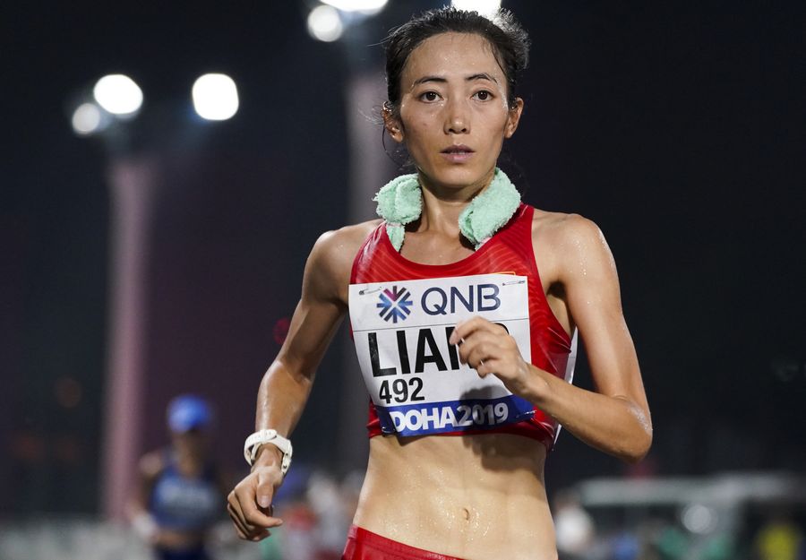DOHA, Sept. 29 (Xinhua) -- Former world record holder Liang Rui competed for nearly four and a half hours in sweltering weather conditions to lead a one-two finish for China in the women's 50-kilometer race walk event at the 2019 athletics world championships here on Sunday.