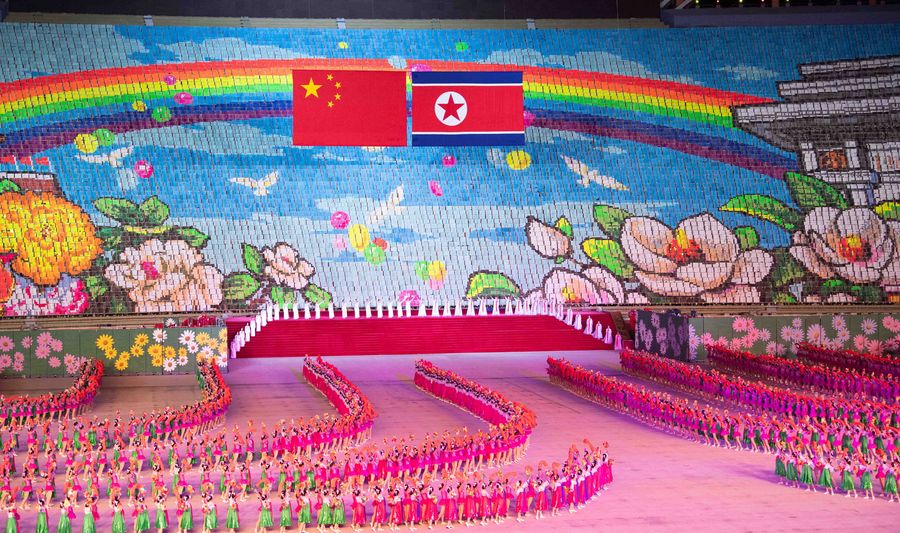 A large group callisthenics and art performance is held at the May Day Stadium in Pyongyang, DPRK, June 20, 2019. (Xinhua/Shen Hong)