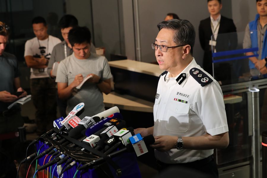 Lo Wai-chung, Commissioner of Police of HKSAR speaks at a press briefing in south China's Hong Kong, Oct. 1, 2019. (Xinhua)