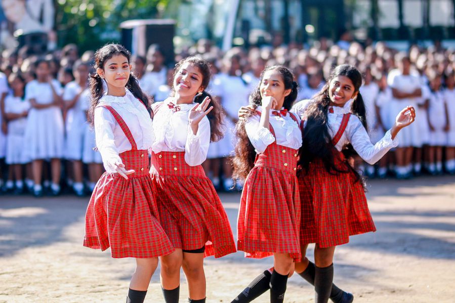 Students perform to celebrate Children's Day at Gothami Balika Vidyalaya in Colombo, Sri Lanka, on October 1, 2019. (Photo by Gayan Sameera/Xinhua)■