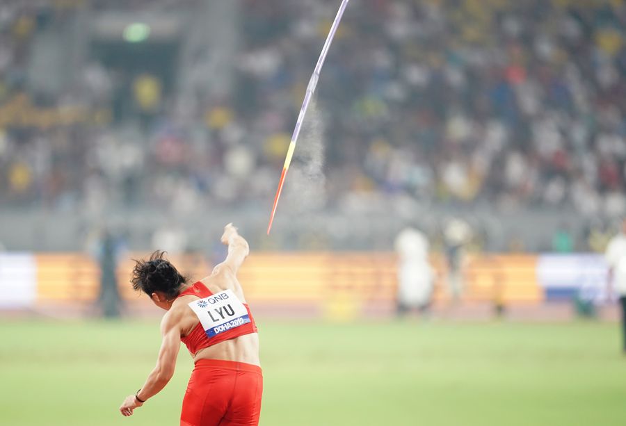 Lyu Huihui of China won the bronze medal with 65.49m at the women's javelin throw final of the 2019 IAAF World Athletics Championships in Doha, Qatar, on Oct. 1, 2019. (Xinhua/Jia Yuchen)