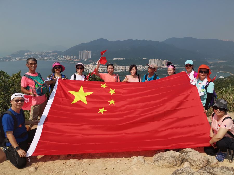 People celebrate 70th anniversary of the founding of the People's Republic of China (PRC) at Dragon's Back in south China's Hong Kong, Oct. 1, 2019. (Xinhua)