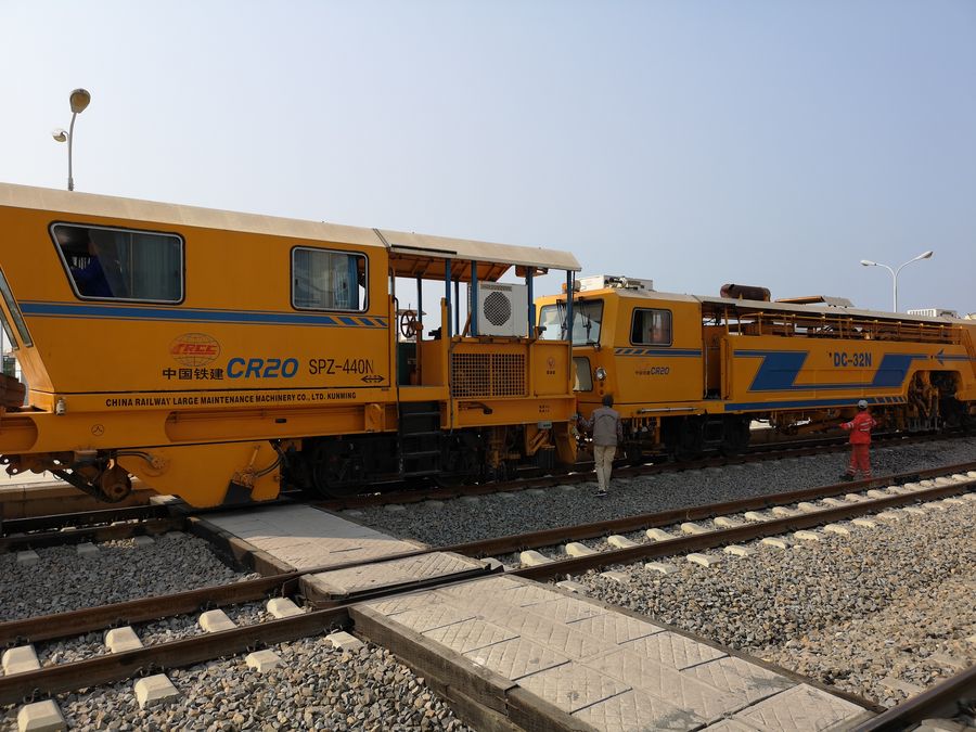 The photo shows maintenance train in Lobito station on Benguela Railway in Lobito, Angola on Oct. 3, 2019. (Xinhua/Liu Zhi)