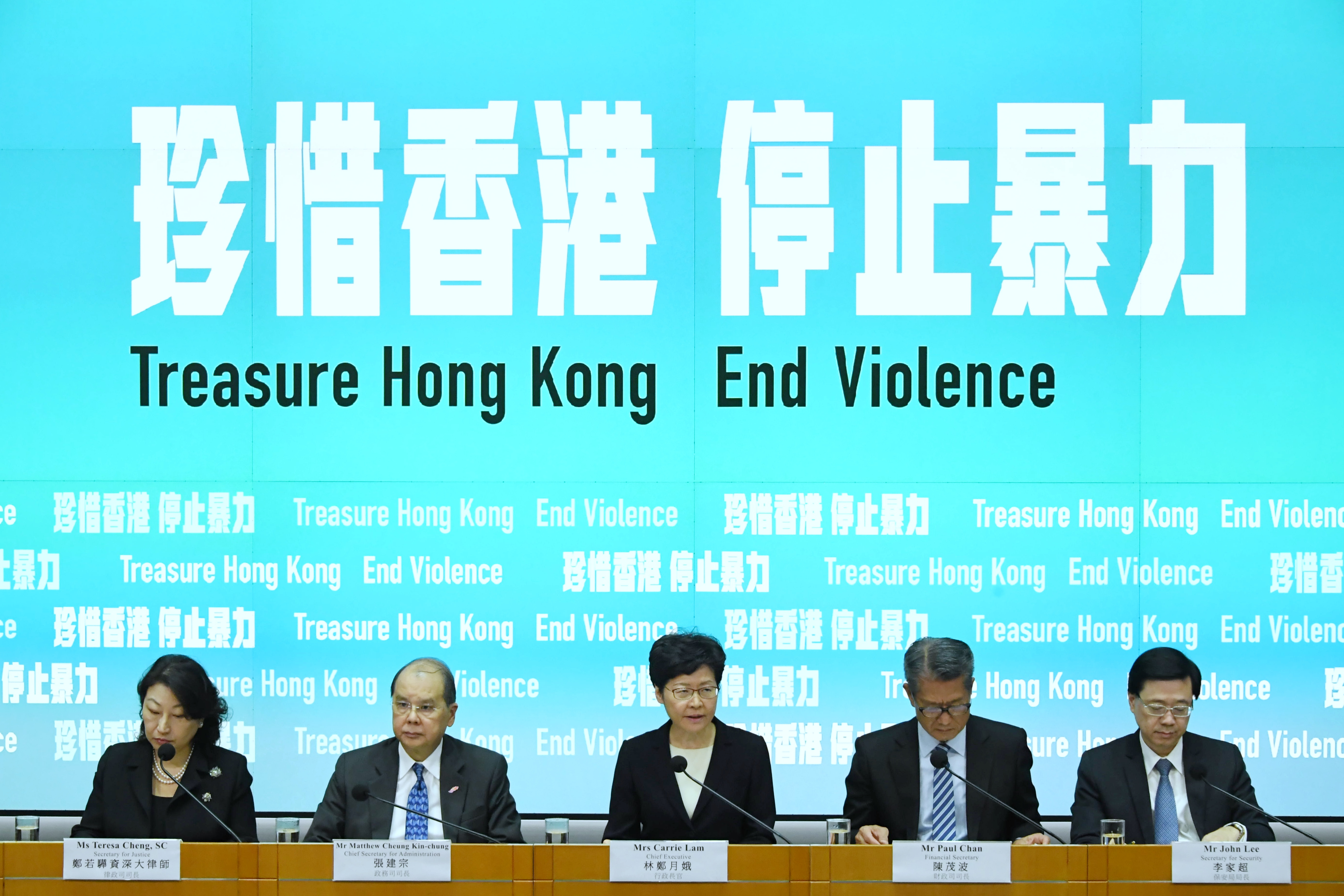 HKSAR Chief Executive Carrie Lam told a press conference Friday that the government has invoked the power under the Emergency Regulations Ordinance and passed the Prohibition on Face Covering Regulation to "create a deterrent effect against masked, violent protesters and rioters."