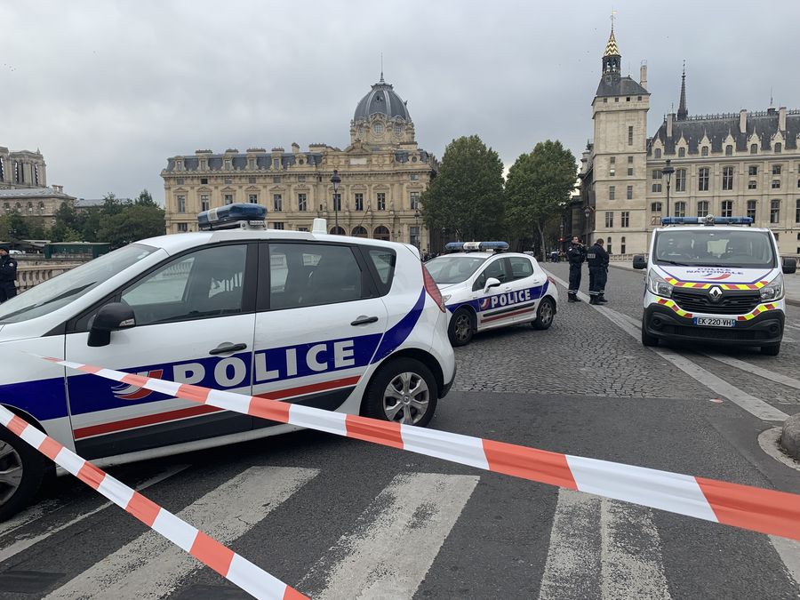 Police cars were parking near the site of the knife attack in Paris, France. (Xinhua/Tang Ji)■