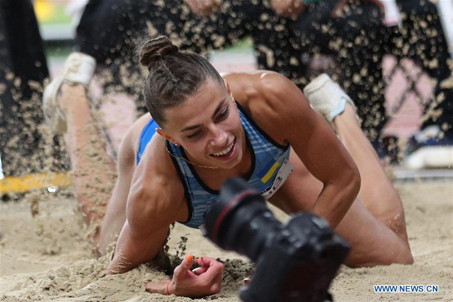 Maryna Bekh-Romanchuk of Ukraine competes during the women's long jump final at the 2019 IAAF World Championships in Doha, Qatar, Oct. 6, 2019. (Xinhua/Li Ming)
