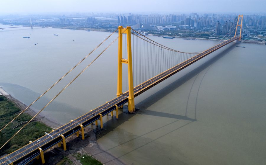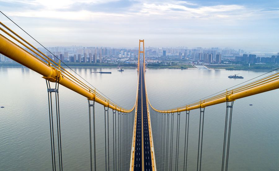 With a 1,700-meter-long main span, the Yangsigang Yangtze River bridge opened to traffic on Oct. 8.