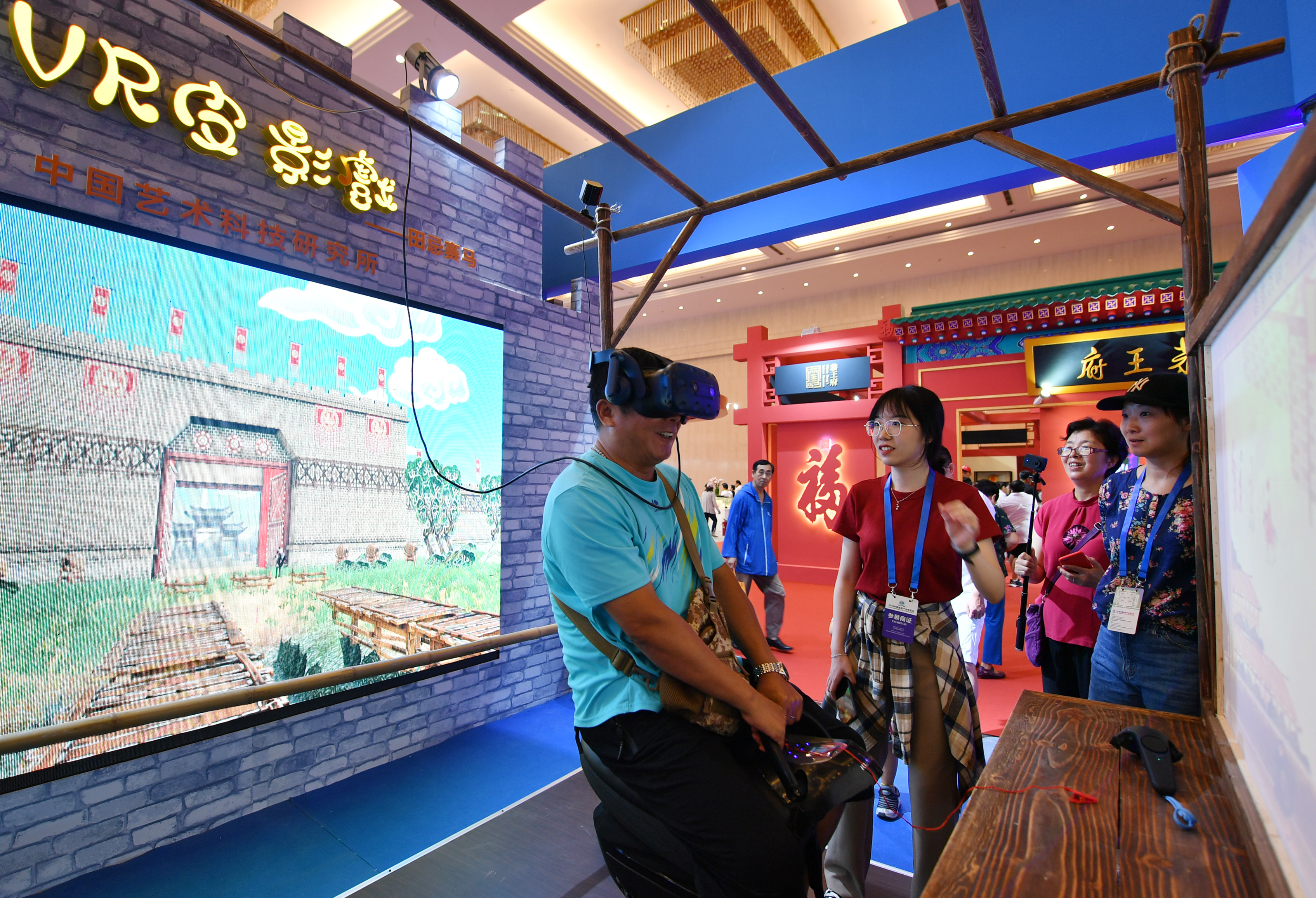 One visitor was using VR gear to watch a shadow play during the China Tourism Industry Expo held in Tianjin between Sept 6-8. (Xinhua/Mao Zhenhua)