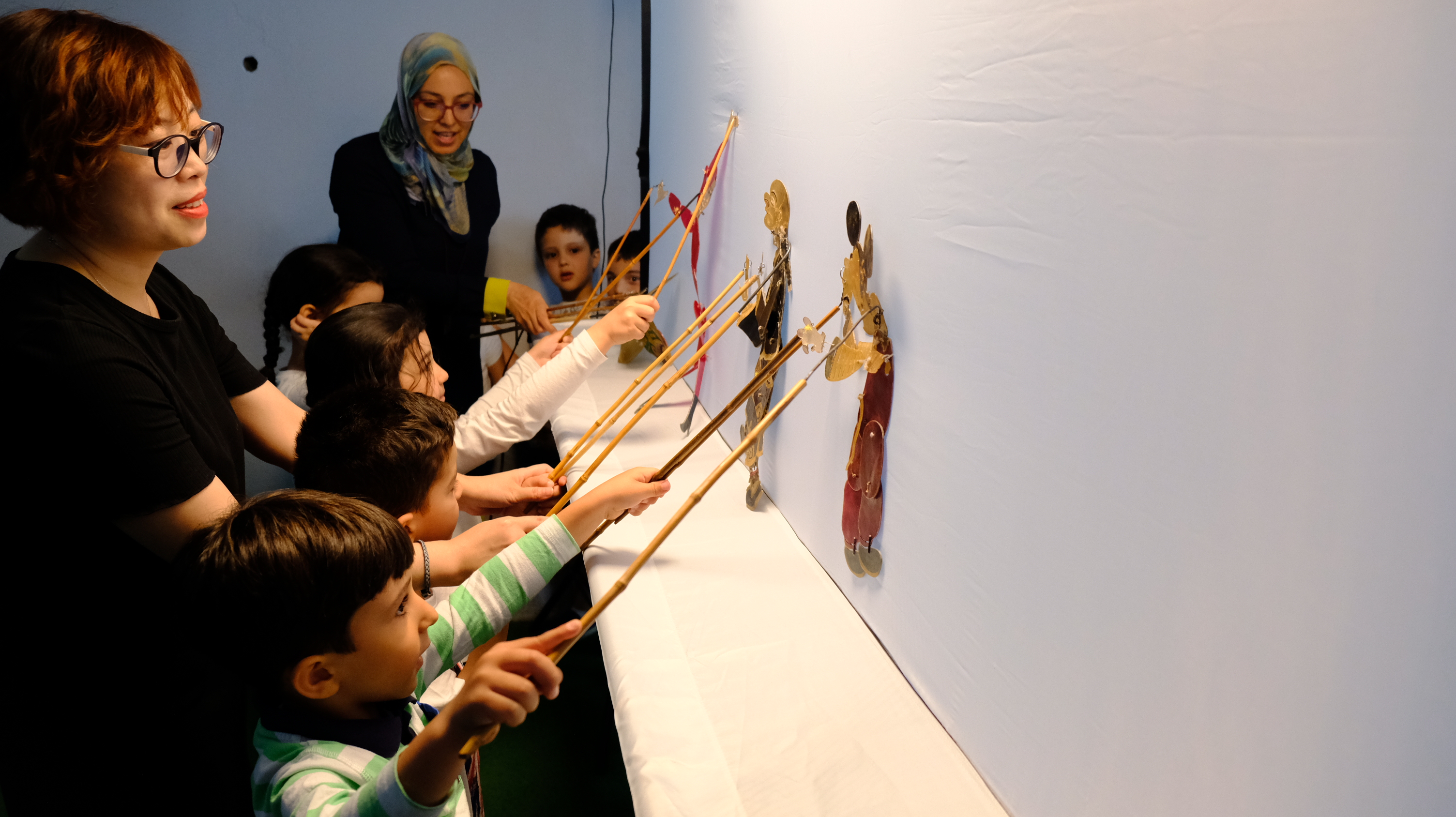 Students try performing Chinese shadow play at the Henry Walloon School in Tangier, Morocco, June 24, 2019. (Xinhua/Chen Binjie)