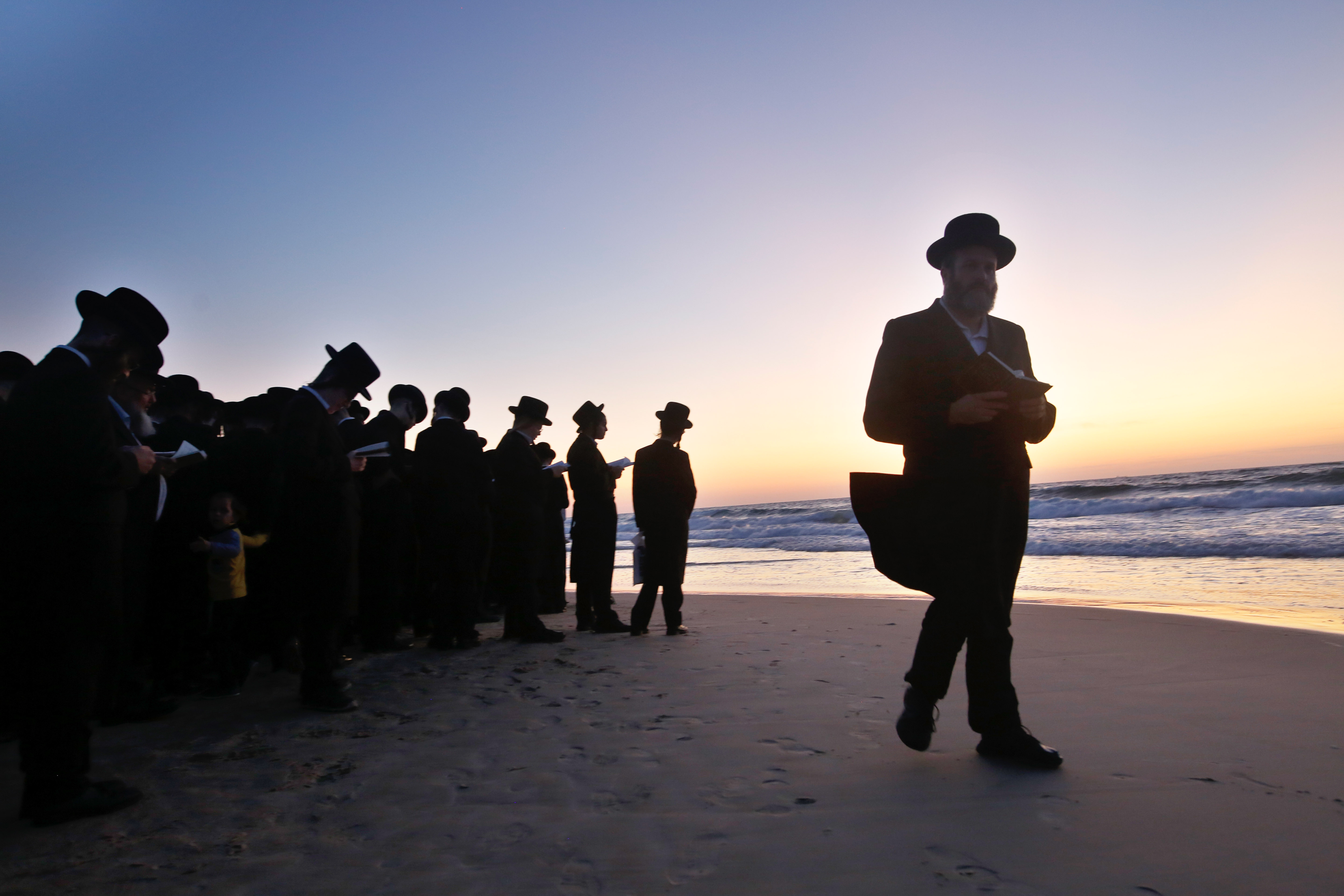 Ultra-Orthodox Jews perform the Tashlich ritual on the shore of the Mediterranean Sea in Ashdod, Israel on Oct. 7, 2019, ahead of the Jewish holiday of Yom Kippur. (Photo by Gil Cohen Magen/Xinhua)