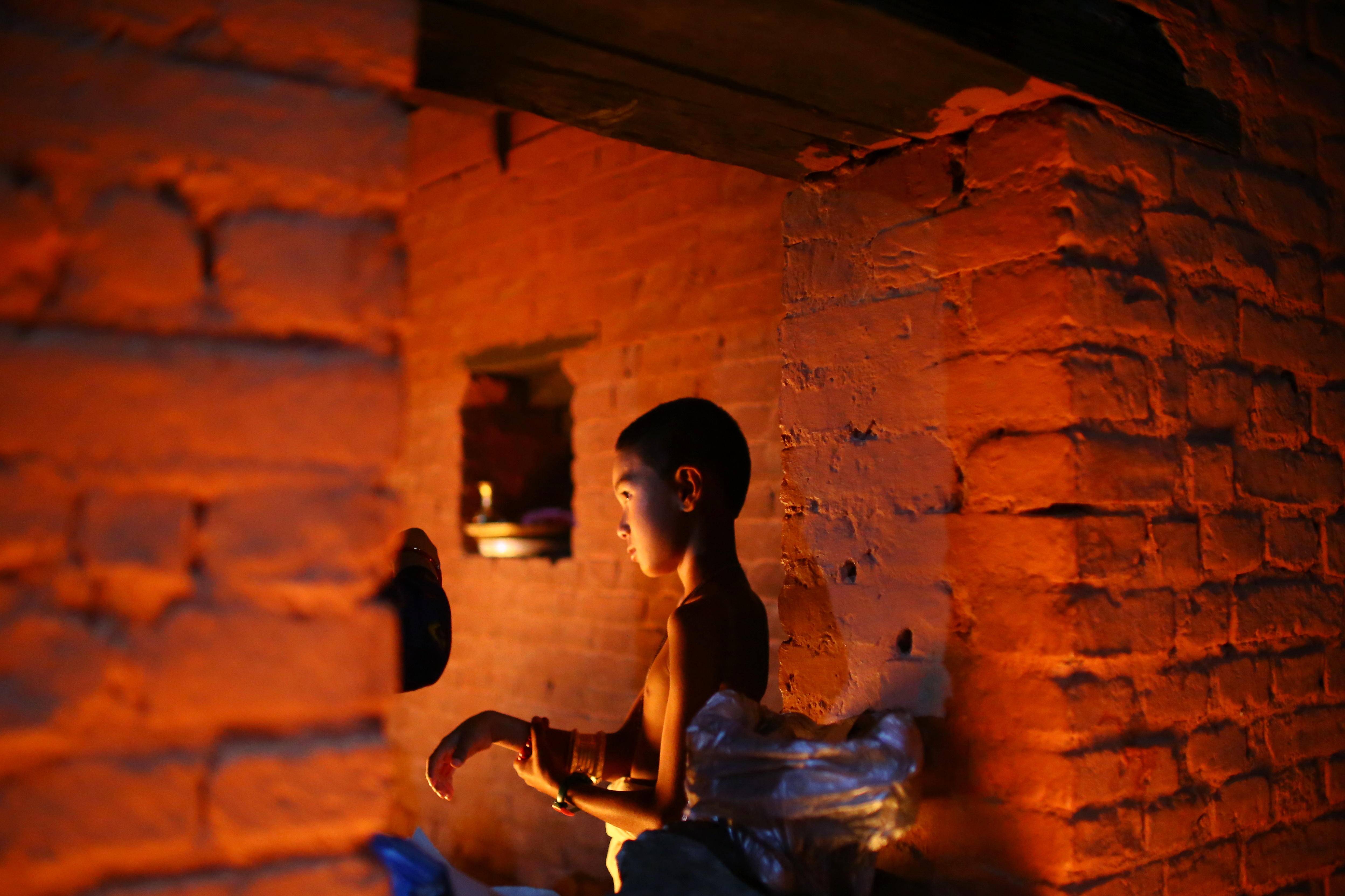 A young Hindu devotee is pictured before he takes part in ritual prayer on Bijaya Dashami, the tenth day of the Dashain Festival which celebrates the victory of good over evil, at Bhramayani temple in Bhaktapur, Nepal, Oct. 8, 2019. (Photo by Sulav Shrestha/Xinhua)