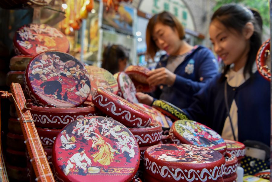 Visitors shop at the grand bazaar in Urumqi, capital of northwest China's Xinjiang Uygur Autonomous Region, Oct. 5, 2019. (Xinhua/Ding Lei)