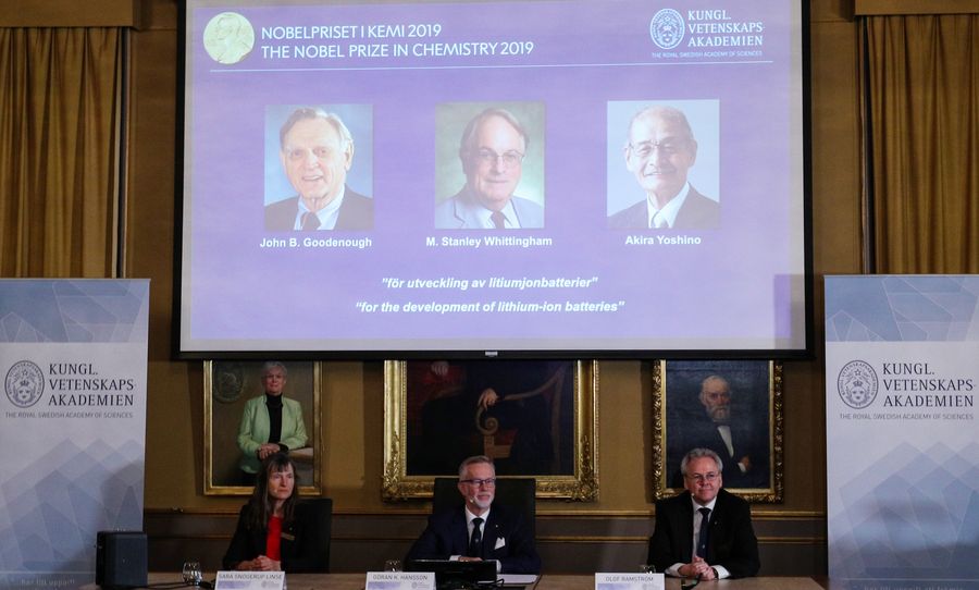 The 2019 Nobel Prize in Chemistry has been awarded to John B. Goodenough, M. Stanley Whittingham and Akira Yoshino "for the development of lithium-ion batteries."