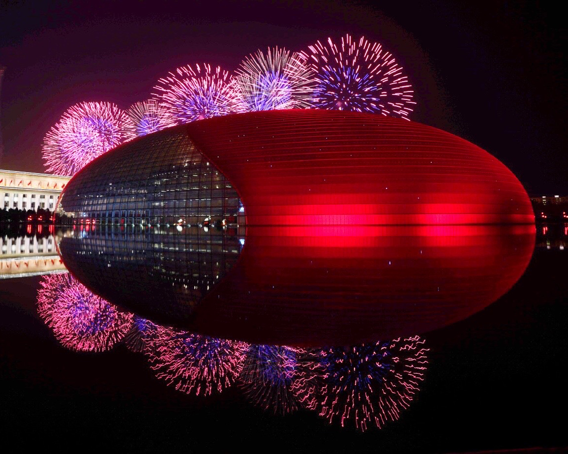 Fireworks light up the night sky above the National Center for the Performing Arts in Beijing, as the capital city holds a grand celebration to mark the 70th anniversary of the founding of the People's Republic of China on Oct 1, 2019. (Xinhua/Cai Yang)