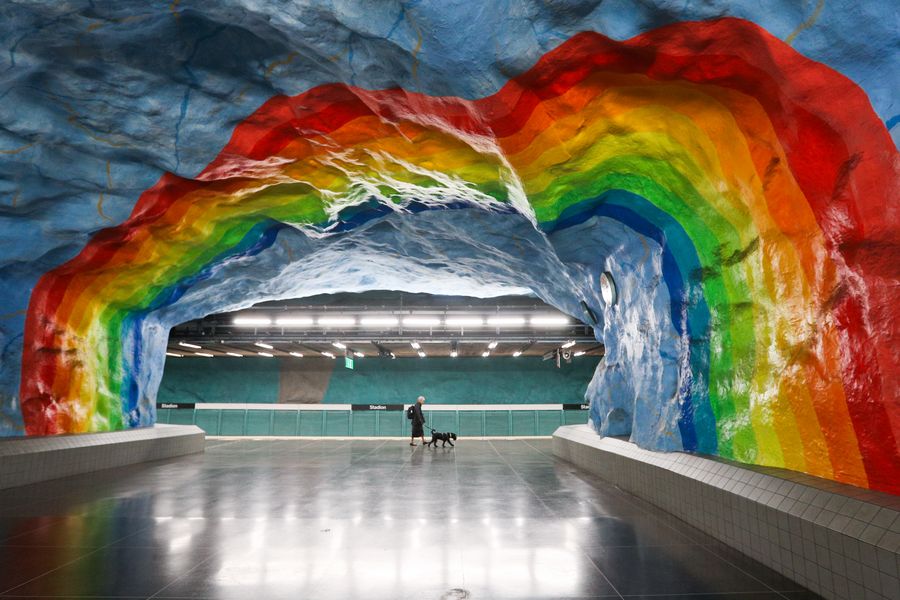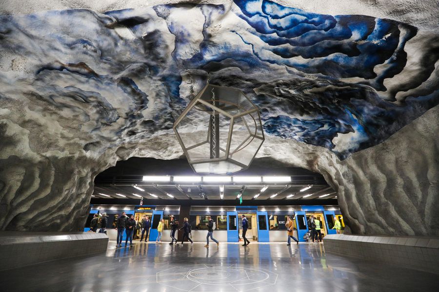 Till now, Stockholm's subway system consists of one hundred stations, each with unique art on its platform, walls or waiting hall.