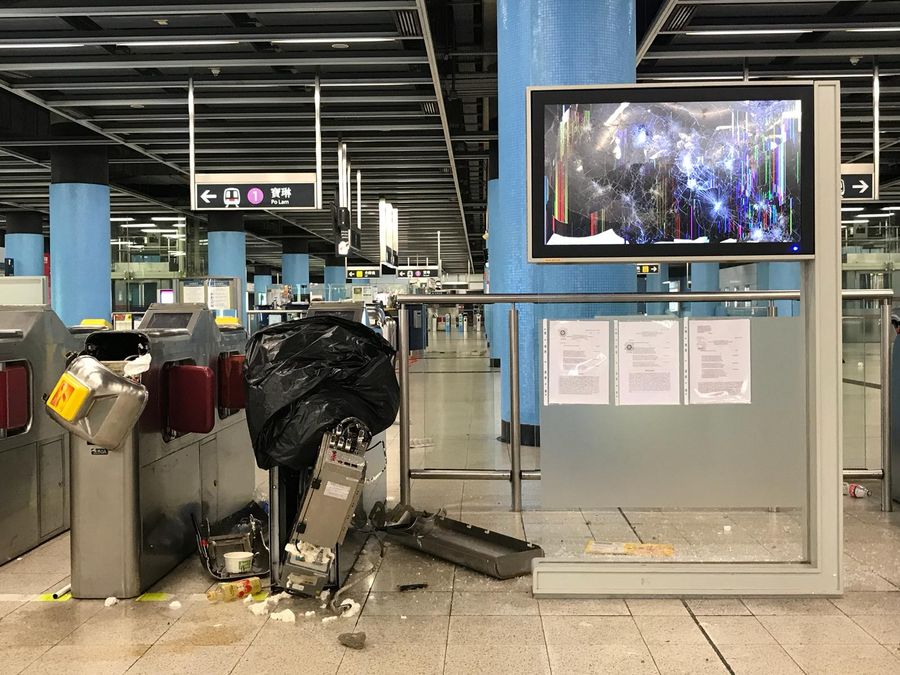 Photo shows damages by rioters in Hang Hau MTR Station, Hong Kong, south China. (Photo courtesy of MTR)