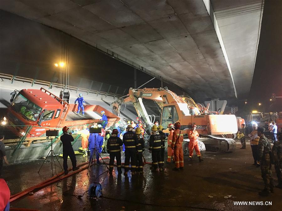 NANJING, Oct. 11 (Xinhua) -- Three people have been confirmed dead and two others injured after a highway overpass in eastern China's Jiangsu Province collapsed Thursday, crushing three cars beneath it, local authorities said Friday.